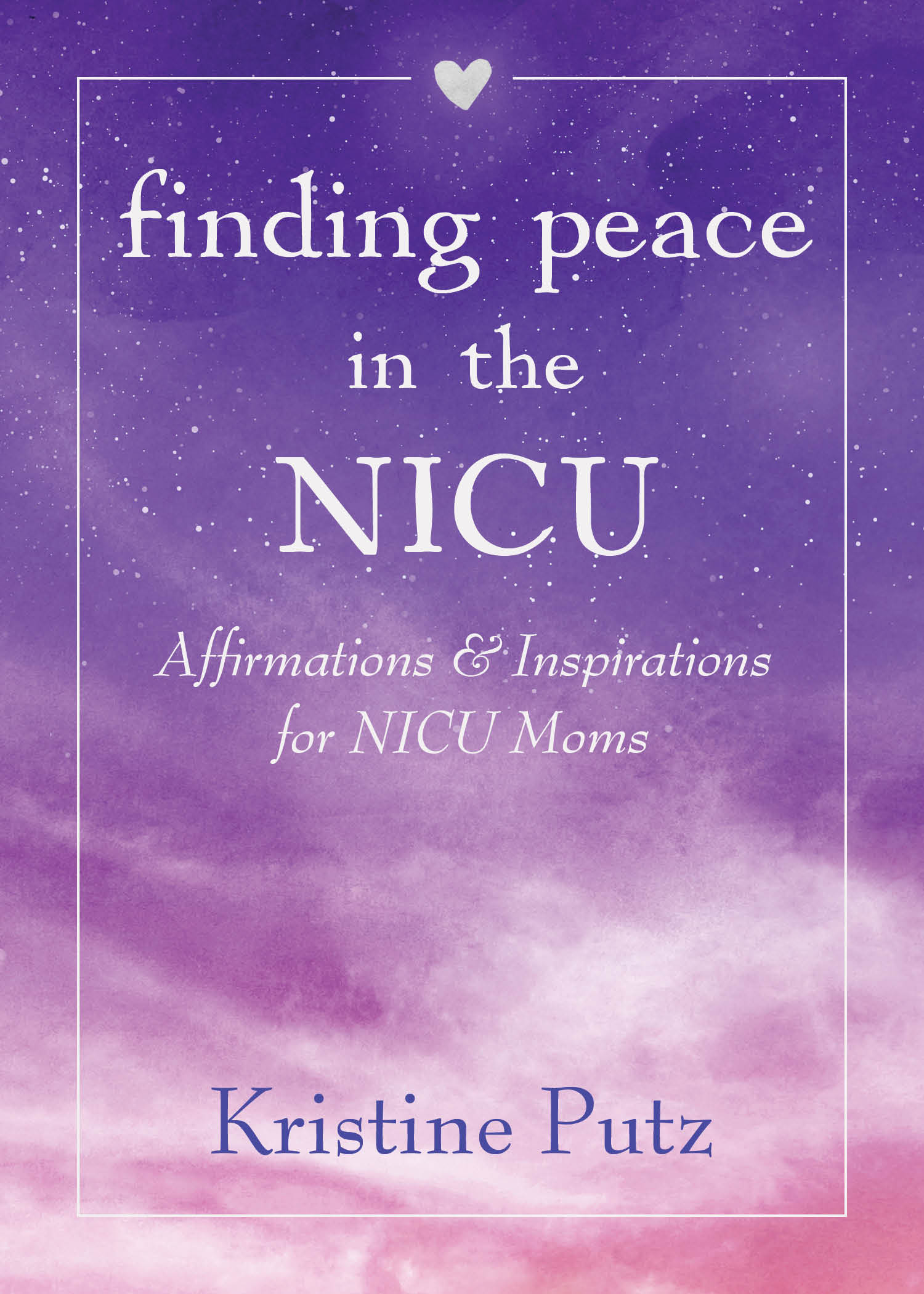 Kristine Putz has been there before. After having twins thirteen weeks premature, she set out to write Finding Peace in the NICU, a supportive resource for preemie and NICU moms. Inside you’ll find empathetic reminders to find moments of self-care and beauty in each day, and encouragement to accept help from others when you need it. Power statements and affirmations provide mantras by which to set boundaries and soldier on in your fight, and journal sections offer space to document your doubts and fears, hopes and wishes.